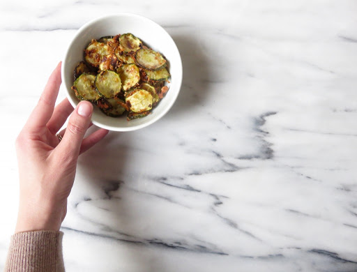 In a large bowl, place the zucchini rounds and coconut oil. Toss to coat the zucchini in oil.
