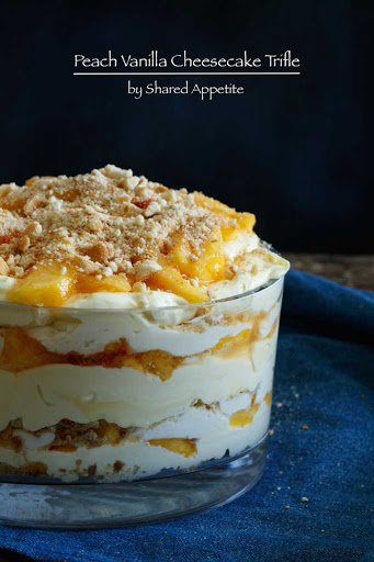 Devour this irresistible Peach Vanilla Cheesecake Trifle. Looks so good in a glass bowl, you'll want to...eat it...