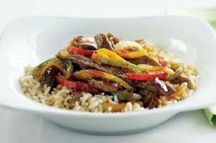 • 1 lb. well-trimmed boneless beef sirloin steak, cut into strips