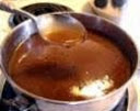Remove from heat, stir in liquid. Return pan to heat, stirring and scraping in the rich drippings.