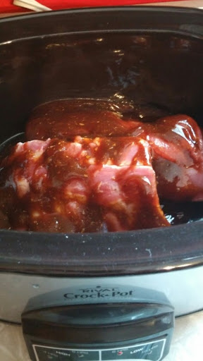 Sprinkle salt and pepper on ribs. Place ribs in slow cooker.