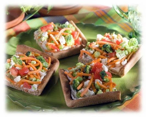 Blend cream cheese and ranch dressing together until well combined. Spread evenly over cooled crust. Combine all vegetables together and sprinkle over cream cheese mixture.