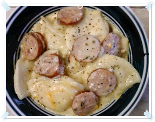 There are so many different flavors of frozen pierogies on the market today, you could mix any flavor combination to add a little something extra to this dish. Substituting cooked bacon for the kielbasa is also a family favorite.