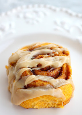 Pumpkin Cinnamon Rolls with Caramel Frosting