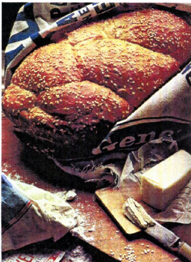 Punch down dough. Knead slightly to expel bubbles. Divide into 3 equal parts. Roll each part into 12" rope. Place side by side into Clay pot and braid. Tuck ends under. Cover and let rise til nearly double in size.-about 45 minutes. Brush top with the egg white and water mixed (egg wash). Sprinkle with sesame seeds.