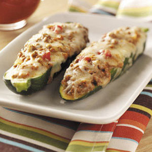 For a change of pace, substitute your favorite barbecue sauce for the marinara in this stuffed zucchini recipe