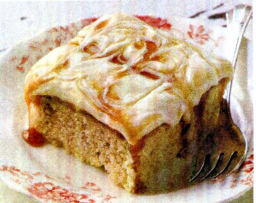 SPREAD Easy Cream-Cheese Frosting over cooled cake. Pour remaining 1 jar caramel topping over frosting in a zigzag pattern. Drag a butter knife through caramel topping to create desired design. Store tightly covered in the refrigerator for up to 5 days.