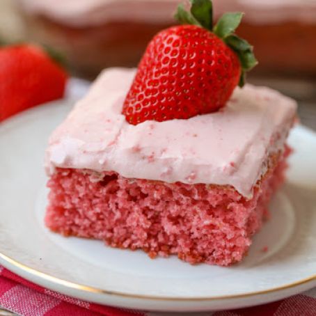 6. While cake is cooling make frosting by creaming together the butter and cream cheese. Add vanilla, powdered sugar and strawberry puree. Frost cake. ENJOY!
