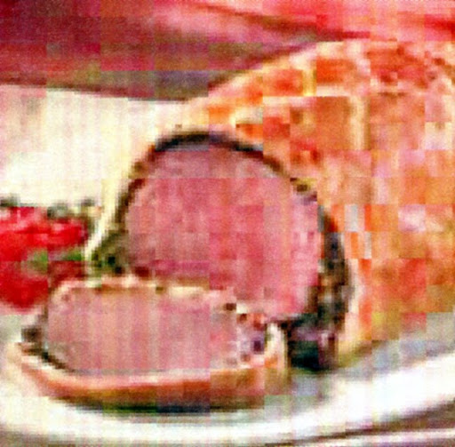 Bake for 25 minutes or until the pastry is golden and a meat thermometer reads 140 degrees F.(more if you want less rare. Slice and serve warm.