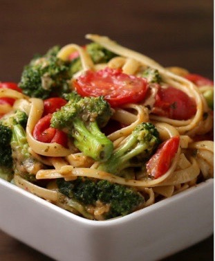 2. Add the tomatoes and pesto, cooking until tomatoes are softening.
