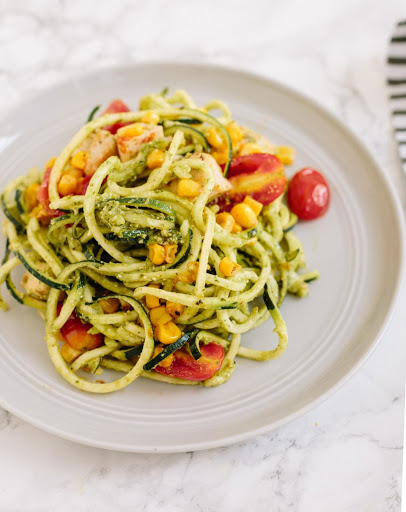 What could get better than fresh pesto pasta? This Inspiralized version uses zucchini noodles for a gluten-free, low-carb impastah. Serve it chilled on those hot summer days!