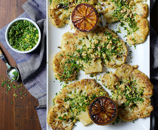 CAULIFLOWER*****Crispy Cauliflower Steaks with Parmesan, Gremolata and Charred Lemons