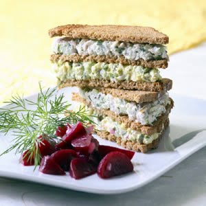 To assemble sandwiches: Divide the egg mixture among 4 slices of bread. Top with bread, then spread with the trout mixture. Top with the remaining bread. Cut each sandwich in half and serve.