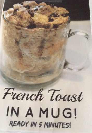 In a microwaveable mug, mix egg, milk, syrup, cinnamon and salt. Cut bread into bite sized pieces and add to mug, pressing down to submerge bread in liquid. Add chocolate chips. Sprinkle with cinnamon and sugar if desired. Microwave 2 minutes, stopping every 30 seconds to stir, then wait 10 seconds to start again. Let cool for 1-2 minutes.