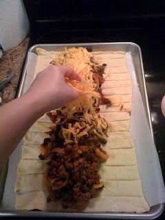 6. Fold crescent strips over meat mixture and press the strips together to seal the braid.