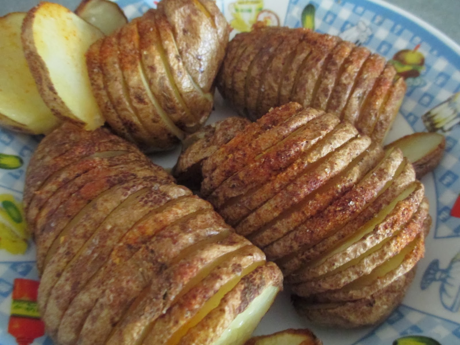 Slice through potatoes 3/4 way through, making sure to leave the bottom intact.