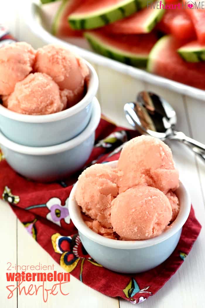2-Ingredient Watermelon Sherbet is a light, refreshing frozen treat that comes together with just fruit and yogurt, the perfect healthy snack or dessert for cooling down all summer long!