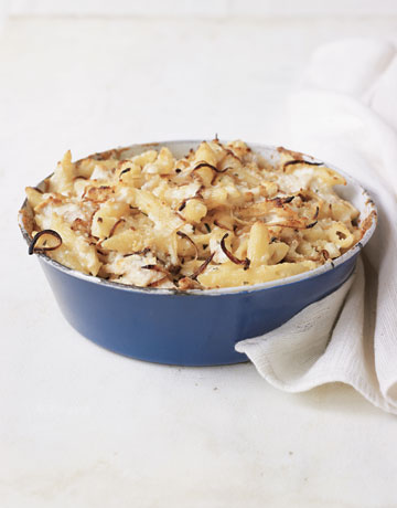 Add onion to pasta and stir to combine. Add mozzarella, chicken, 2/3 cup Parmesan, and rosemary; stir to combine.