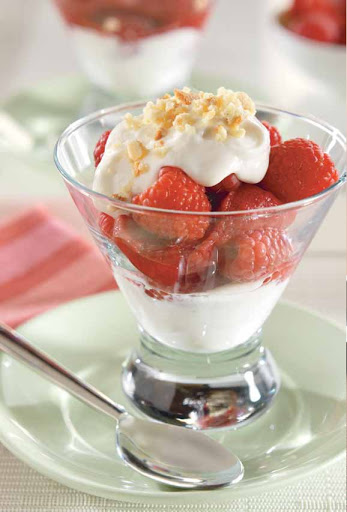 2 Spoon 2 tablespoons yogurt mixture into each of four parfait glasses. Top with ¼ cup sorbet, ½ cup raspberries, 2 tablespoons yogurt mixture and cookie crumbs.