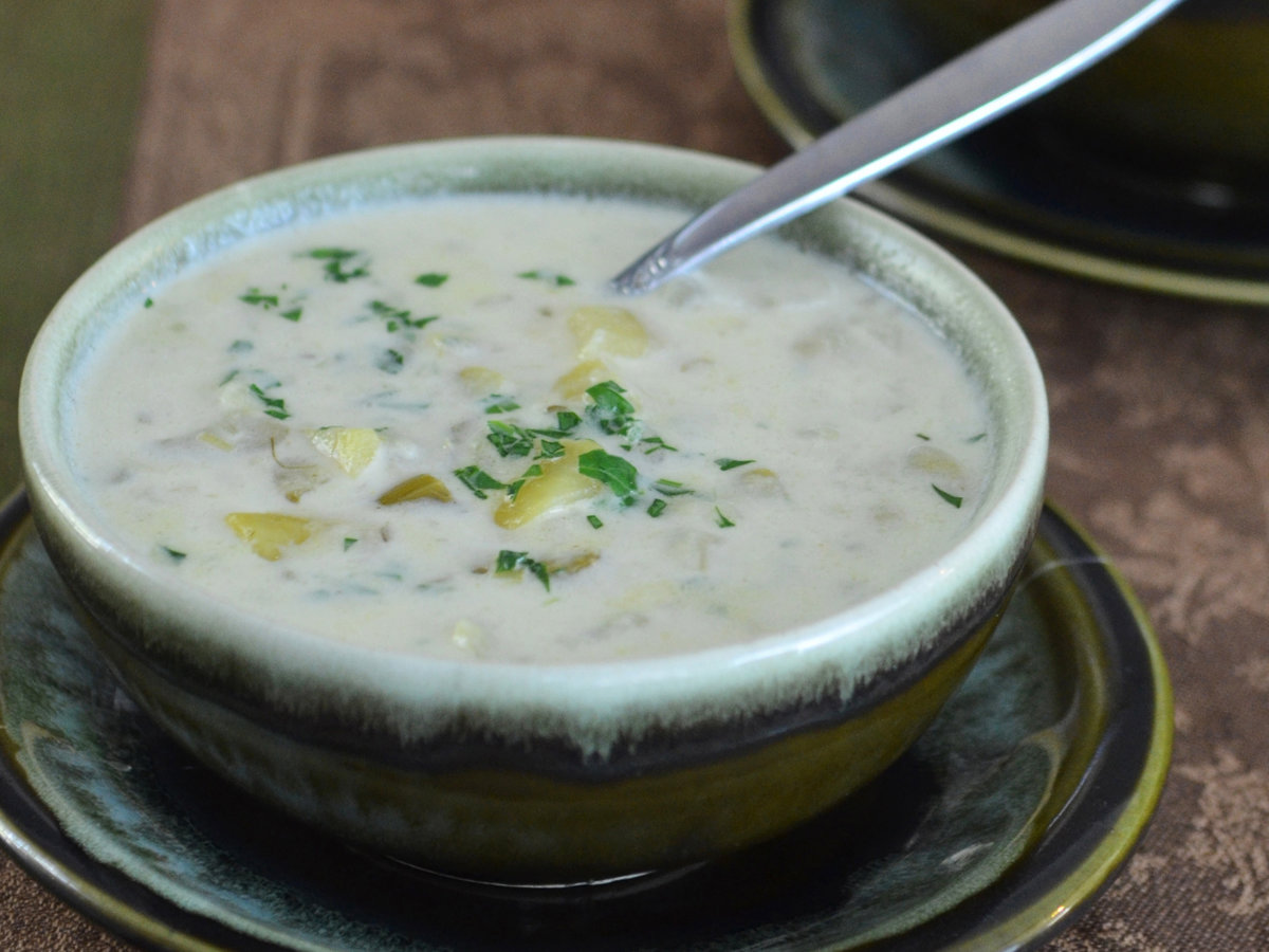 In a large saucepan, melt the butter. Add the leek, onion, fennel, celery, shallot, thyme, garlic and a generous pinch of salt and cook over moderate heat, stirring occasionally, until the vegetables are softened and just starting to brown, about 10 minutes. Add the stock, potatoes, 2 tablespoons of the parsley and 1 tablespoon of the tarragon. Bring to a boil, then simmer over moderately low heat until the vegetables are very tender, about 40 minutes.