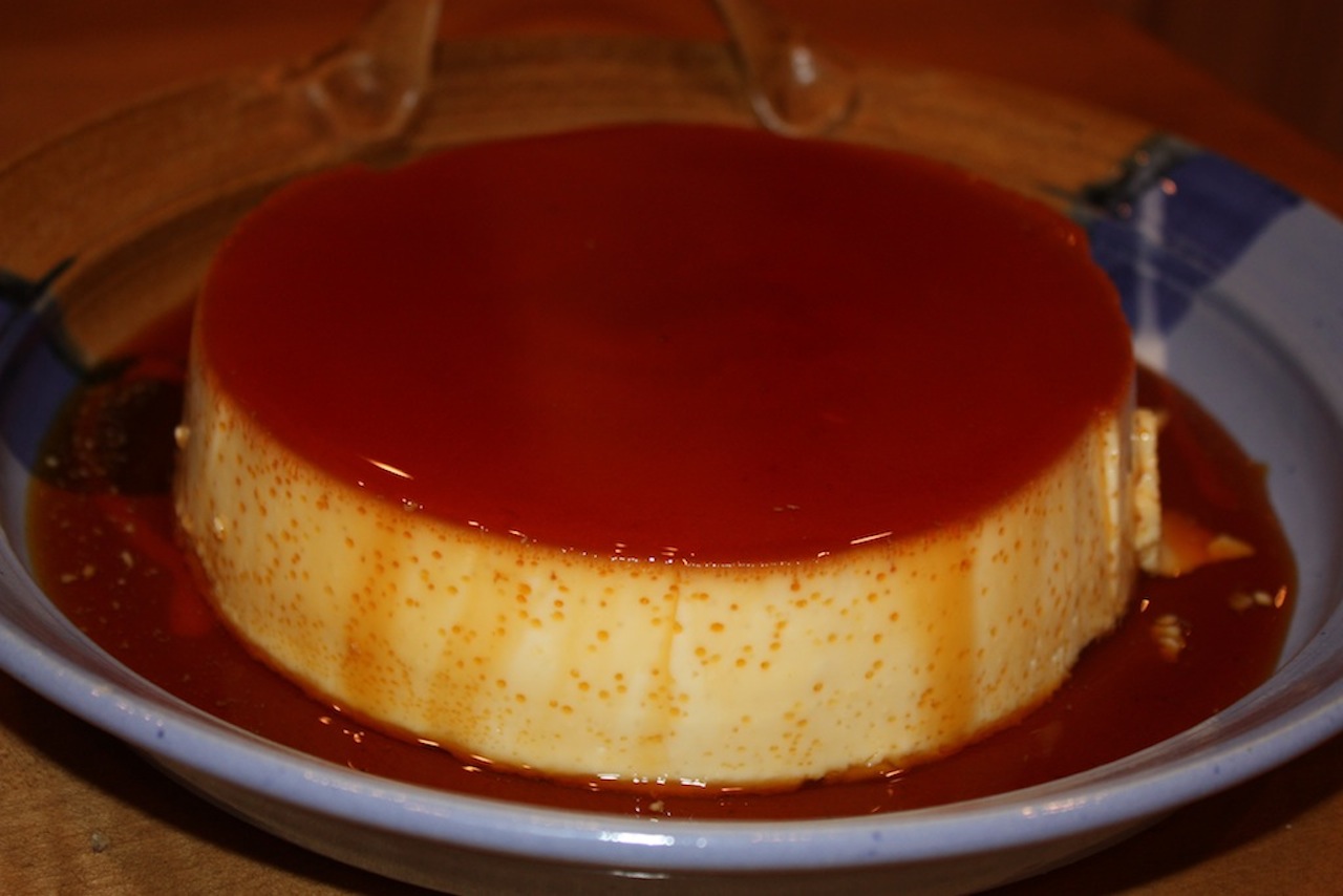 Pour 1/4 cup Water into a medium saucepan. Slowly pour 2/3 cup Sugar into the center of the saucepan, making sure to not get any sugar on the sides of the pan. Using a spatula, gradually stir the sugar just enough to moisten all the sugar. Bring to a boil over medium heat. Once it starts boiling cook without stirring until the mixture becomes a straw color. This can take anywhere from 7 to 13 minutes. At about the midpoint it’s going to look like it’s not working and that the sugar is just getting crusty. It’s ok. It will start to melt and turn brown. The following pictures show you the different stages of the caramel. (If you notice the sugar is melting quicker on one side than the other, turn the pot every so often to even out, Once the sugar begins to turn a straw color and the crystals are almost all melted, start to swirl the pot until the sugar crystals are all melted and the caramel is a golden color. Carefully pour the caramel into the Flanera pan. (Do not use a spatula to scrape out any remaining caramel. Whatever doesn’t pour out of the pan, just leave it.)
