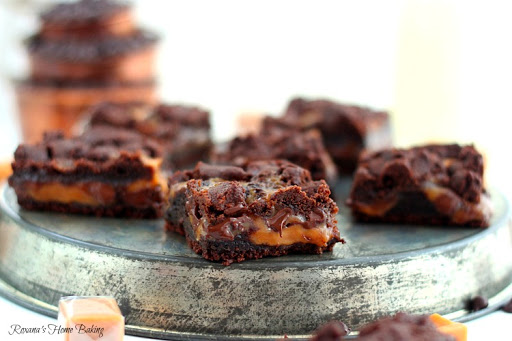 It may seem bubbly and undone but once cooled the caramel and chocolate layers will set.