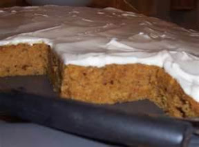Cream cheese & butter. Add the rest of ingrediants. Frost cake. Top with nuts.