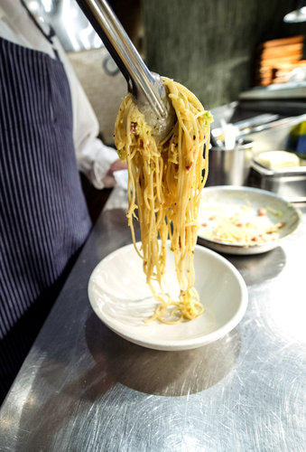 • 8 ounces pasta of choice (bucatini, fettuccine, angel hair -- whatever)