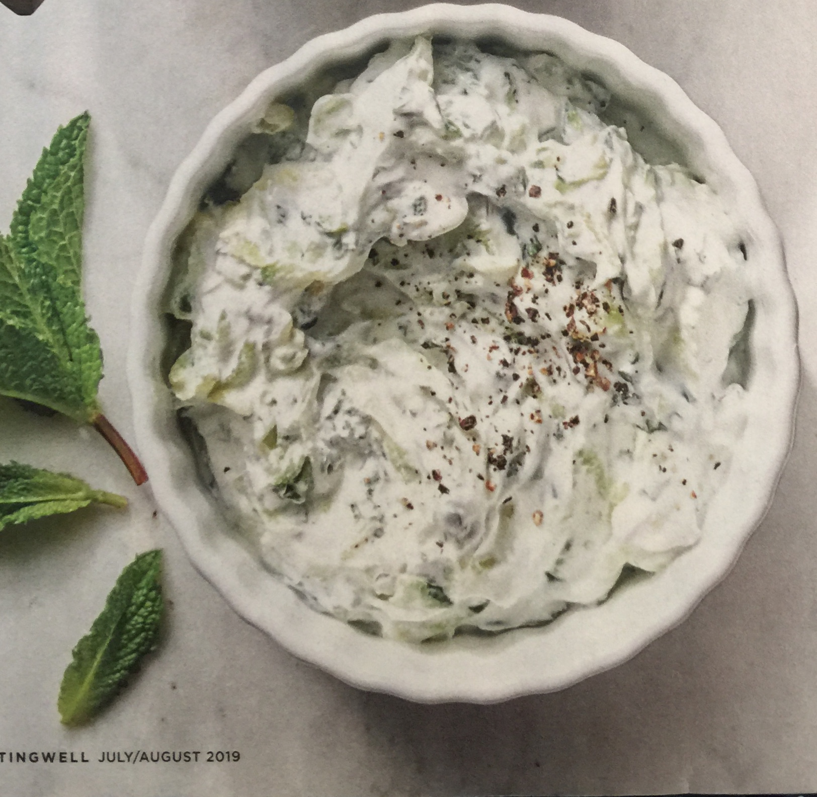 Transfer to a medium bowl and stir in the yogurt, mint, lemon juice, salt, and pepper