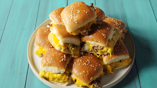 Coat a 9x13 baking dish with cooking spray. Place the bottom halves of the slider buns in the dish. Top with cooked beef mixture. Place a slice of cheese over each slider. Place the top halves of the buns on top.