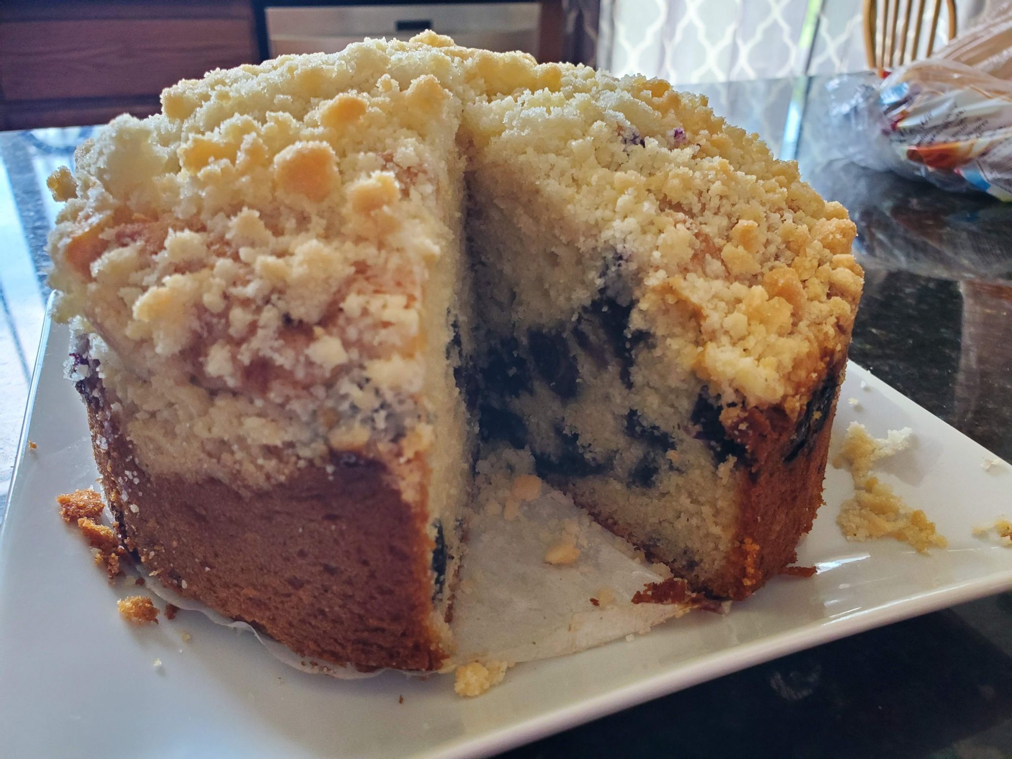 In a large bowl, cream together sugar and butter until light and fluffy. Beat in eggs one at a time, then stir in the vanilla. Beat in the flour mixture alternately with the buttermilk, mixing just until incorporated. Sir in blueberries. Pour batter into prepared pan.
