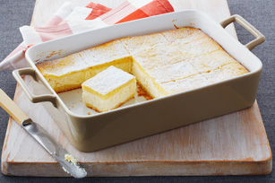Whisk remaining eggs, sugar, flour, butter, milk and baking powder in separate bowl until blended. Spread 1/3 of the batter onto bottom of 9x13 baking dish sprayed with cooking spray; cover with cheese mixture, then remaining batter.