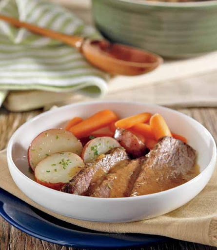 sauce over roast. Serve with potatoes and carrots, if desired.