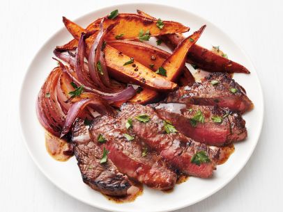 Steak with Beer Sauce and Sweet Potatoes