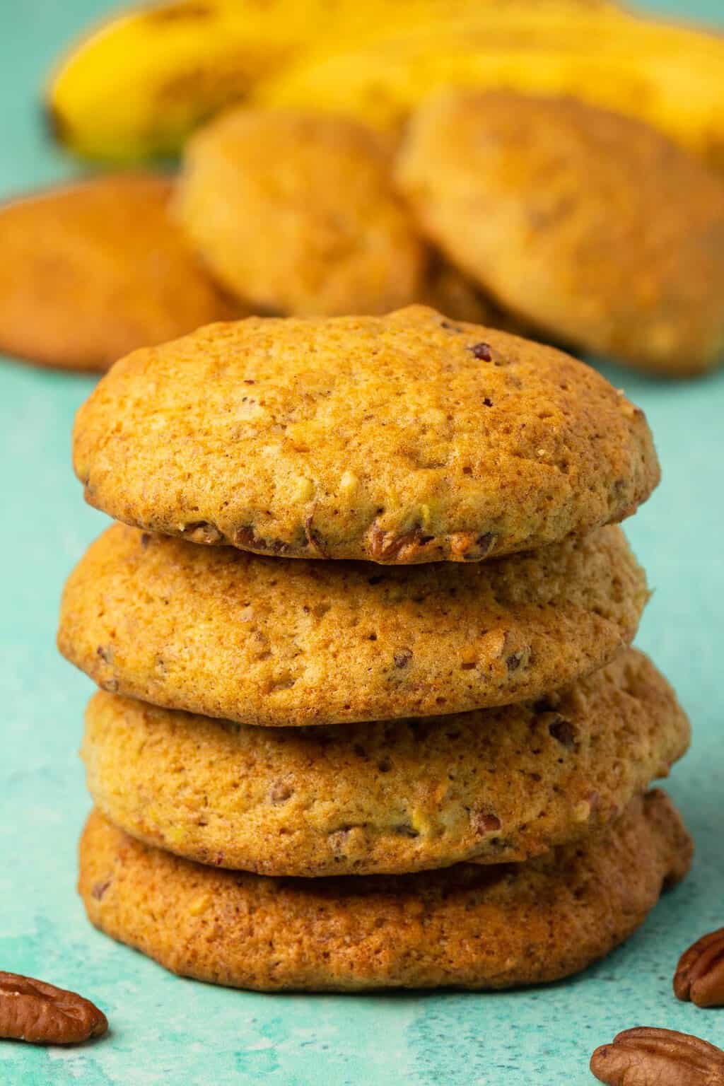These super delicious vegan banana cookies taste just like banana bread in cookie form! They are soft and puffy and packed with banana flavor.