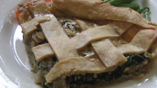 Place one sheet of puff pastry on a well oiled baking sheet, and pour the mushroom filling over the top. Cover with the other sheet, and press the edges together to seal. Make some holes in the top with a fork. Brush the top with beaten egg.