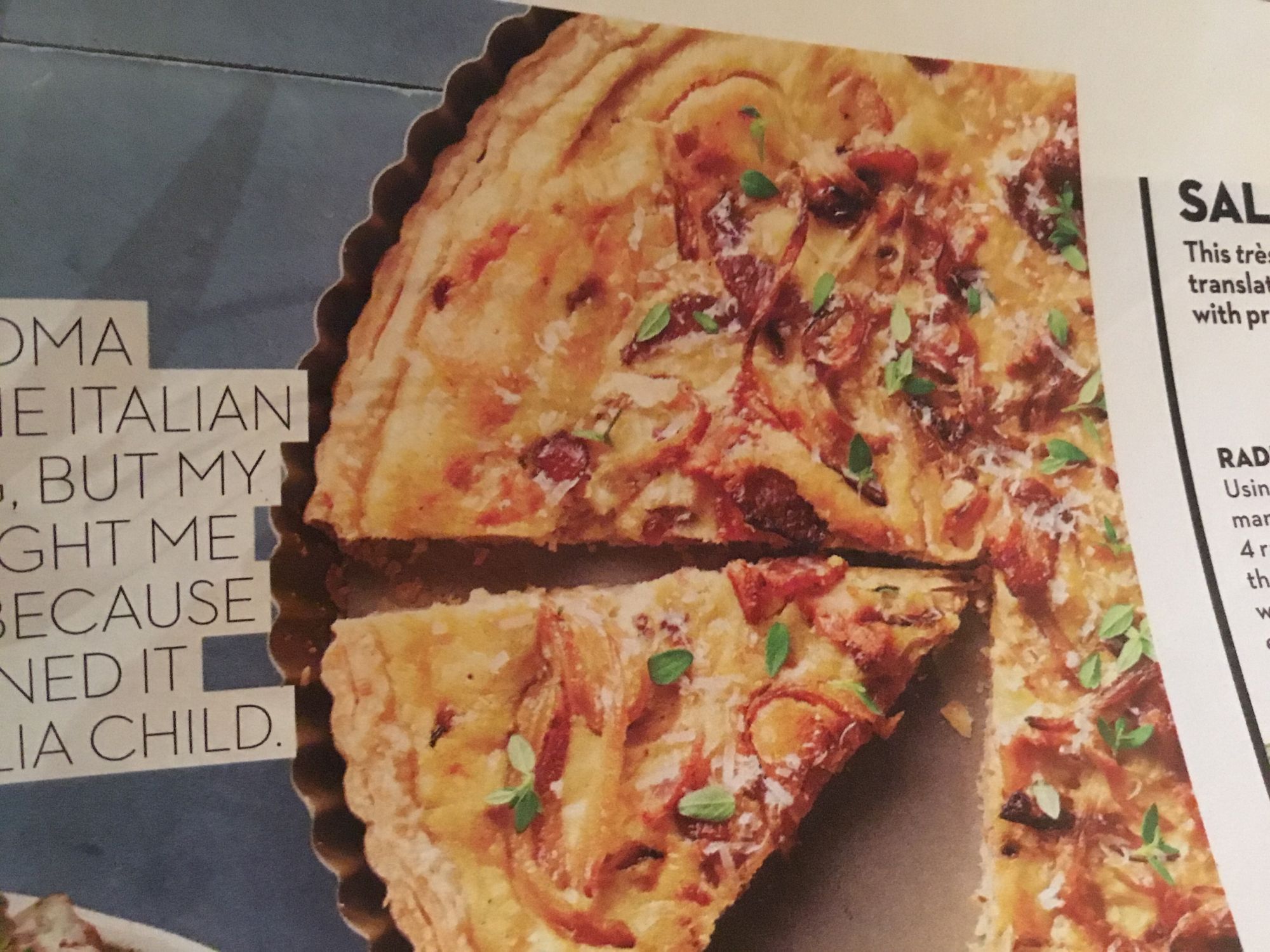 In a large bowl, whisk the eggs, cream, Dijon mustard, cayenne, nutmeg, 2 t salt, and 1/2 t pepper. Stir in the onion and half the cheese.