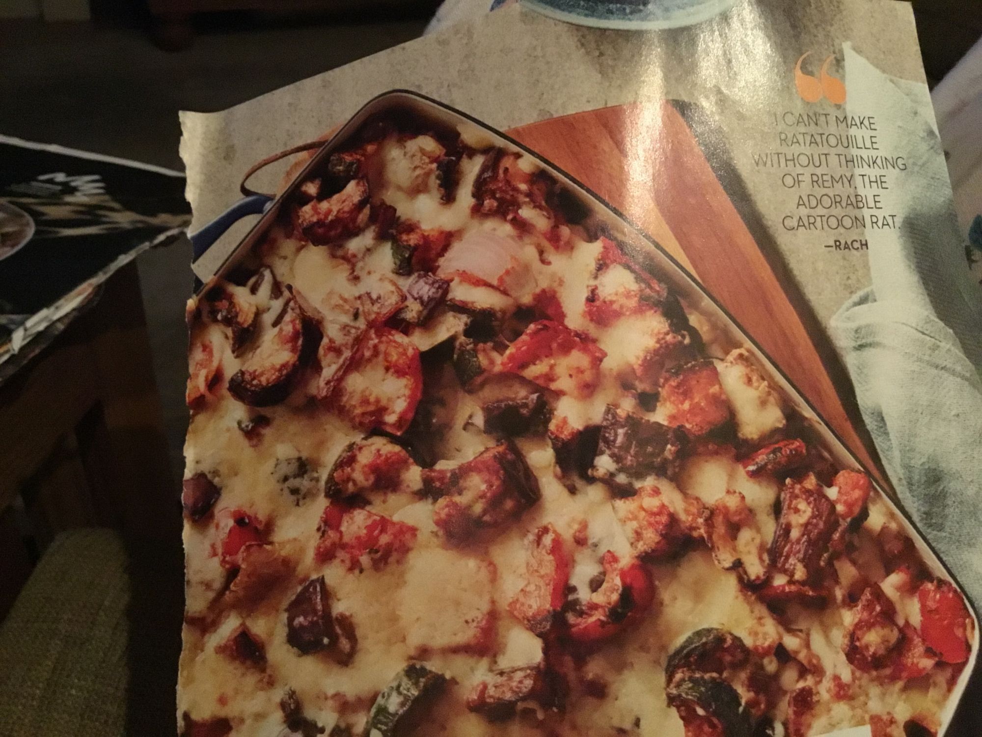 Preheat the broiler. In a small sauce pan cook the butter, oil, and garlic over medium high heat, stirring often, until the butter is infused with garlic about 2 minutes. In a rimmed baking sheet, arrange the bread in an even layer. Broil until lightly browned, about two minutes per side. Liberally brush the cut sides of the bread with the garlic butter. Top with the Parmesan and parsley. Broil until lightly browned, about four minutes. Let cool for a minute. Cut into bite-size pieces. Arrange in a 9 x 13“ baking dish. Top with the ratatouille, then the gruyere. Broil until browned, about 5 minutes.