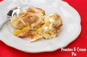 Sift together flour baking powder and salt. Add vanilla pudding butter, egg and milk. Beat 2 minutes & pour into pie plate. Layer pin wheel style sliced peaches. (Save juice). Beat together cream cheese, sugar and peach juice. Spoon overtop. Mix together cinnamon & sugar & sprinkle over the creme cheese mixture.
