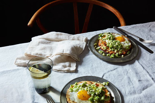 4. Add enough oil to a skillet to coat the bottom. Warm over medium-high heat, then crisp the tortillas on both sides. Set the tortillas on paper towels after they crisp—you can hold them in a warm oven if you'd like. You may need to add a bit more oil as you work through the tortillas. Once the tortillas are ready, fry your eggs. I like sunny-side-up, but certainly if you prefer your eggs over easy or even poached, that will work too.