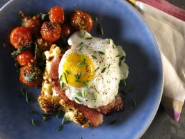 Croque Madame Bread Pudding with Herb-Crusted Tomatoes : Recipes : Cooking Channel