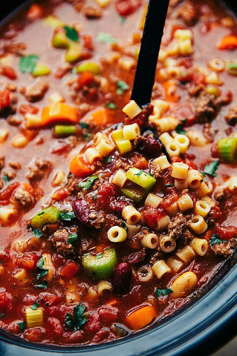 4. Add the uncooked pasta to the slow cooker, stir, and cook for an additional 30 minutes on high. Tip: If you prefer, you can boil the pasta separately. Cook until it is just done (al dente), drain, and toss with a splash of red wine or red wine vinegar to offset the acidity of the tomato sauce. Stir into soup just before serving or serve separately.