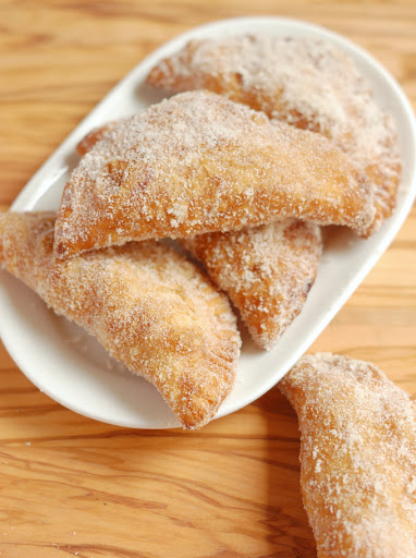 As you remove each pie from the oil place it in the cinnamon sugar, turning once to coat all sides