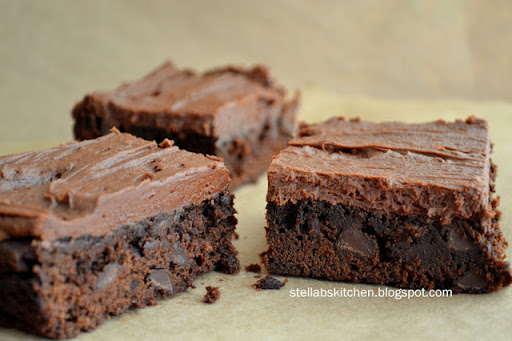I don't claim this often, but these are the BEST brownies you will ever, ever make. You can burn all the other brownie recipes you have on file. These are super chocolaty, studded with chocolate chips and topped with chocolate butter cream frosting. They are dense and rich and will satisfy any chocolate craving with a big glass of milk. Just perfect.