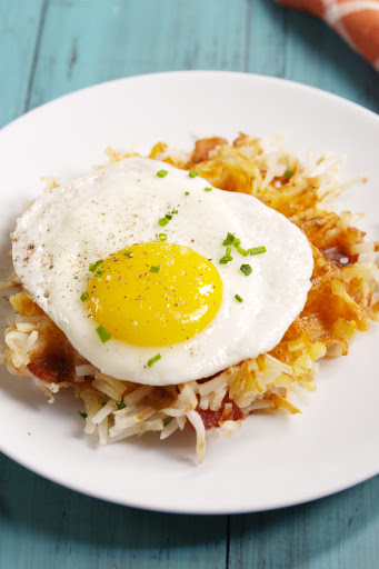 Cook until the hashbrowns are golden brown and crispy and the cheese has melted. Carefully remove waffle (the perimeter might break!) from the waffle iron. Top with fried egg, if desired.