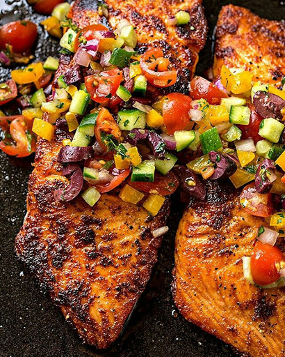 Pan Seared Salmon with Mediterranean Salsa Fresca