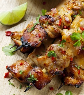 Soak skewers in water for at least 20 minutes to prevent burning.