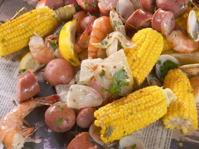 Add the corn and sausage to the pot, cover and cook for another 10 minutes. Add the clams, cover and cook for another 2 minutes. Add shrimp and cook until just cooked through, another 3 to 5 minutes.