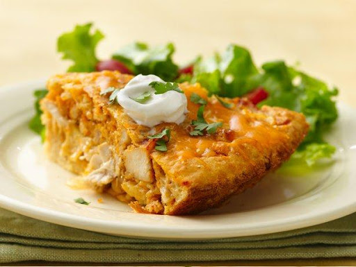 Don't forget to top it off. Serve slices of this savory pie with salsa, sour cream and chopped tomato, or go all out with guacamole and red pepper sauce.