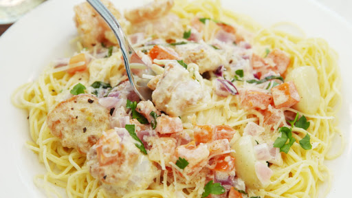 Cook angel hair pasta according to package instructions. Drain and set aside.